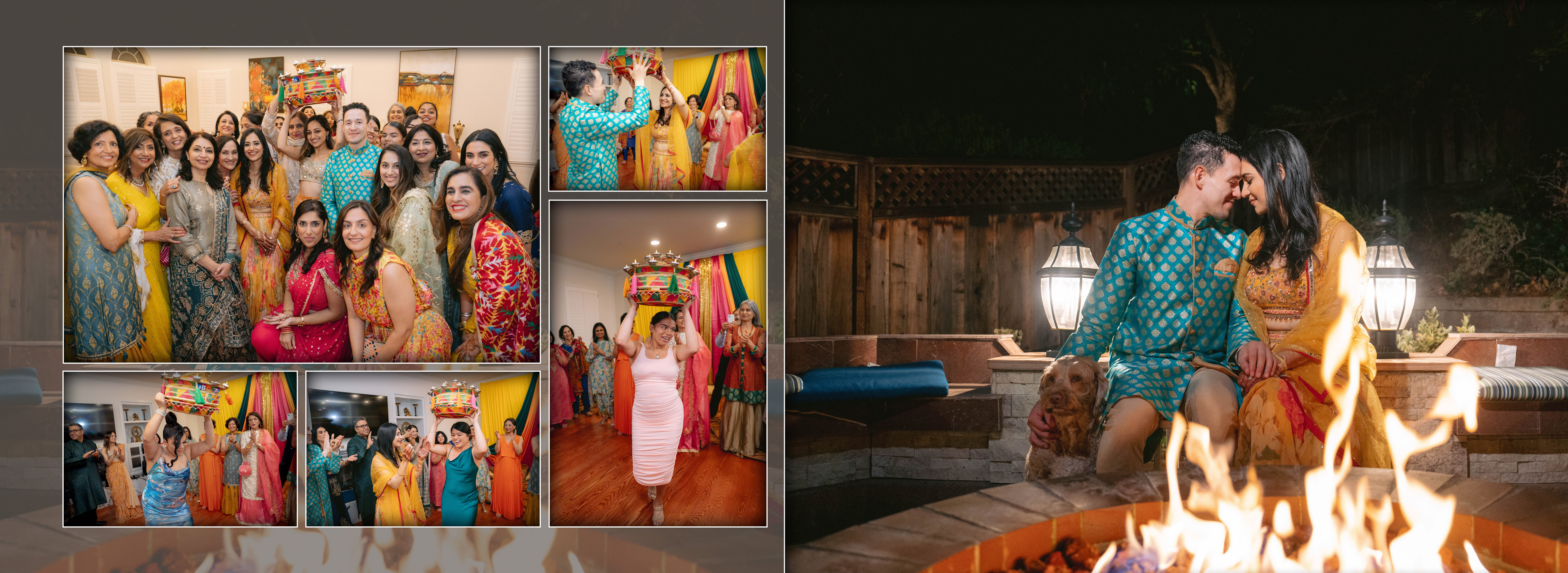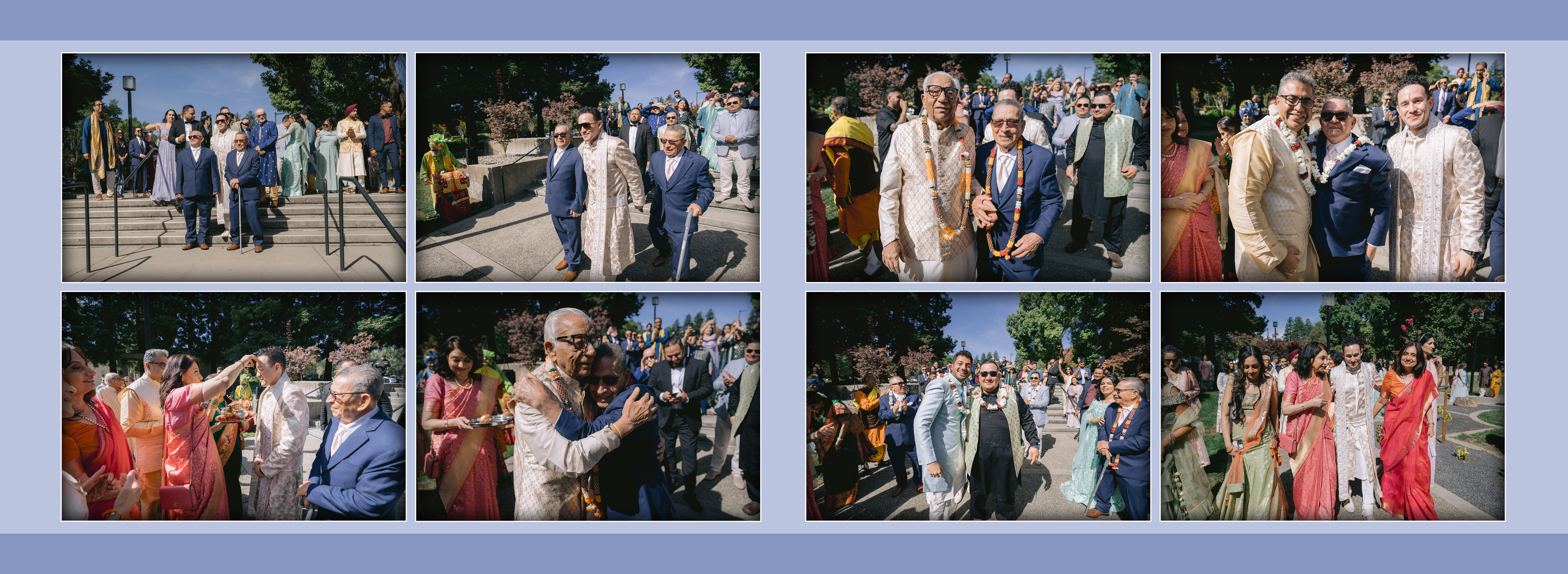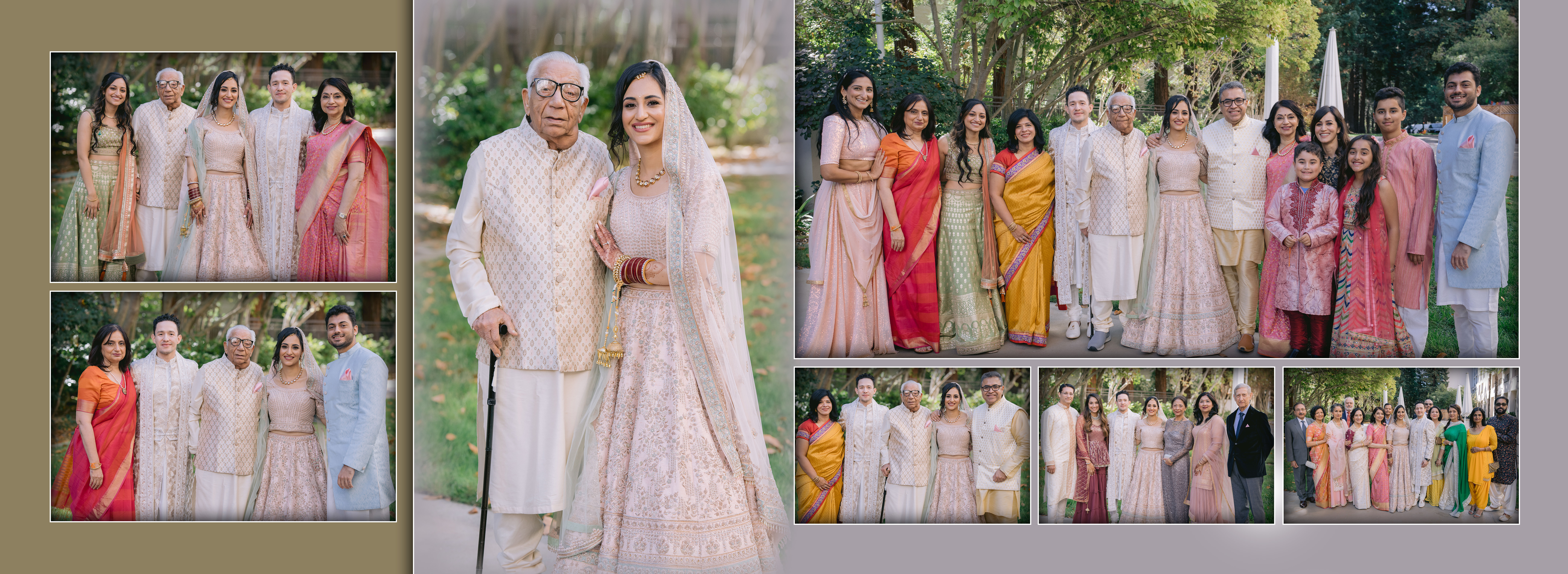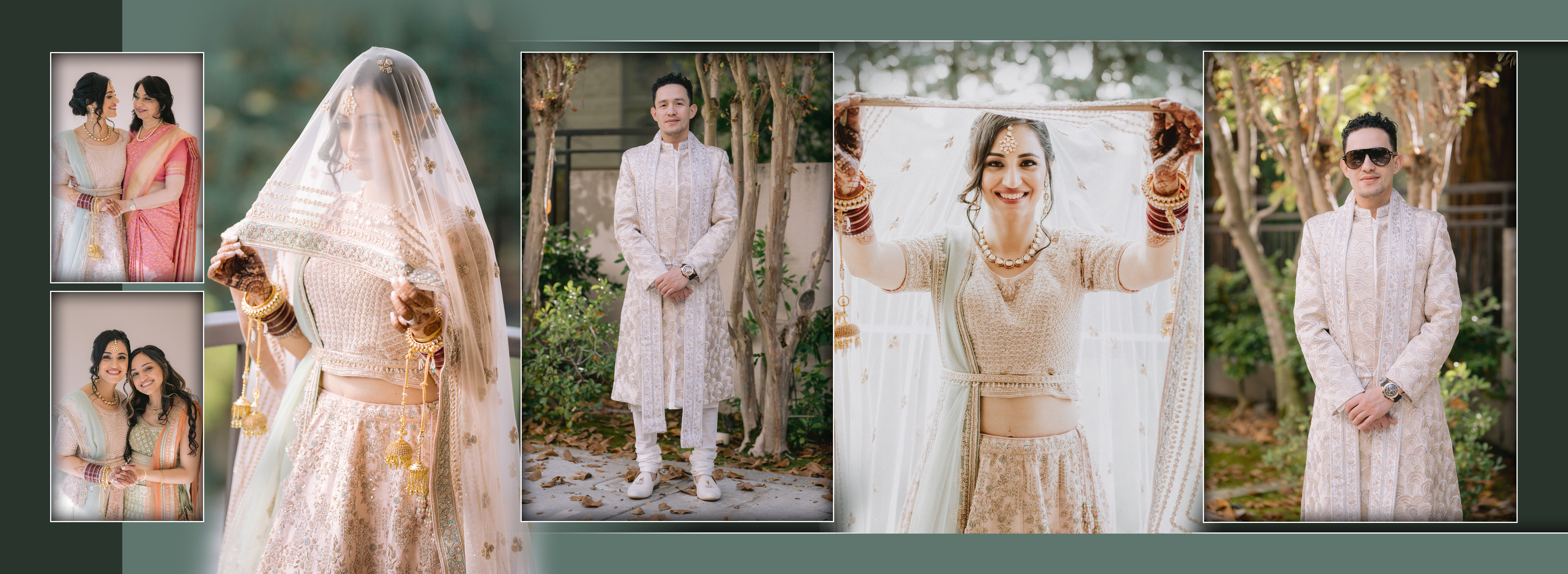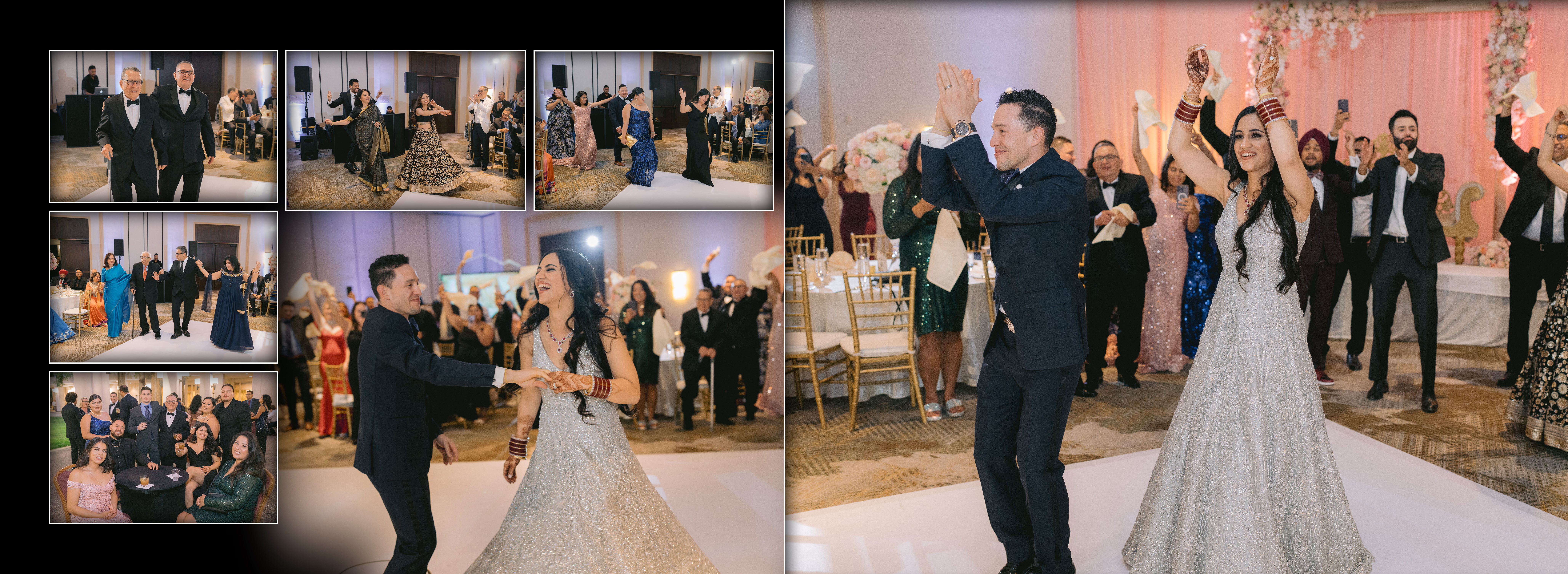 Below is an example of a fusion wedding with a Nicaraguan groom and North Indian bride at San Ramon Marriott. The first spread is the full cover image that was under a beautiful acrylic finish, and the twenty album spreads in order follow it.