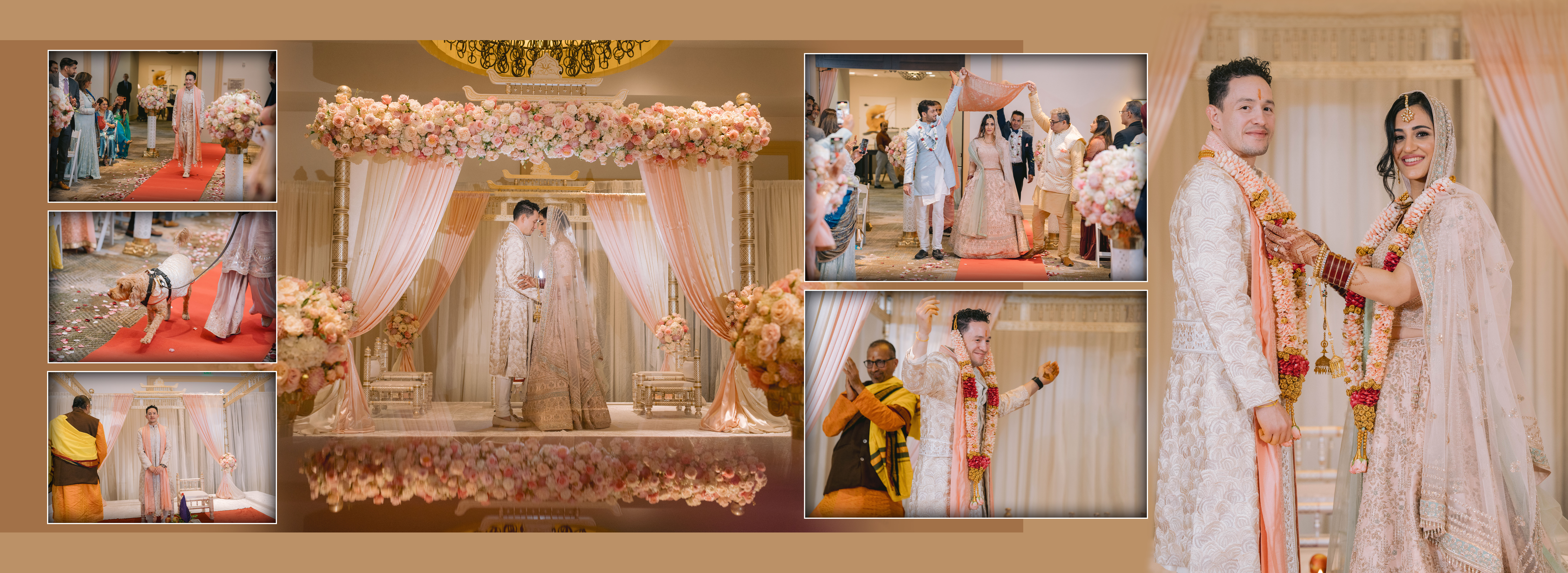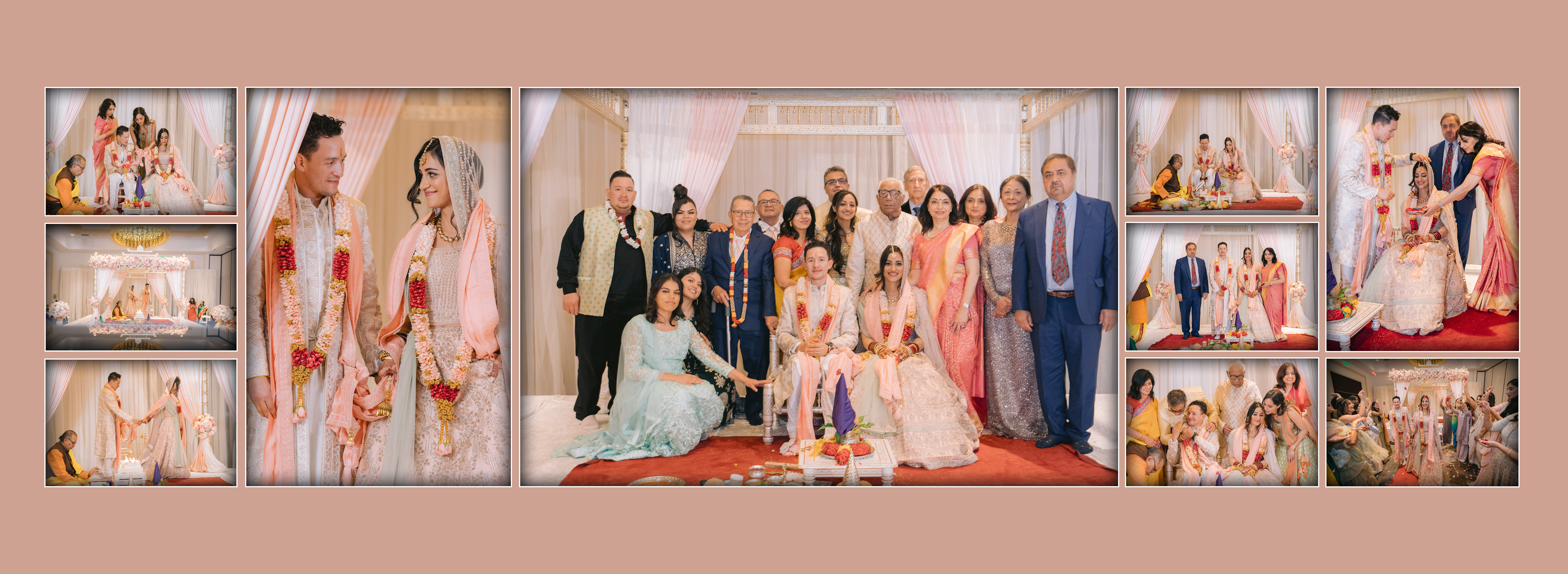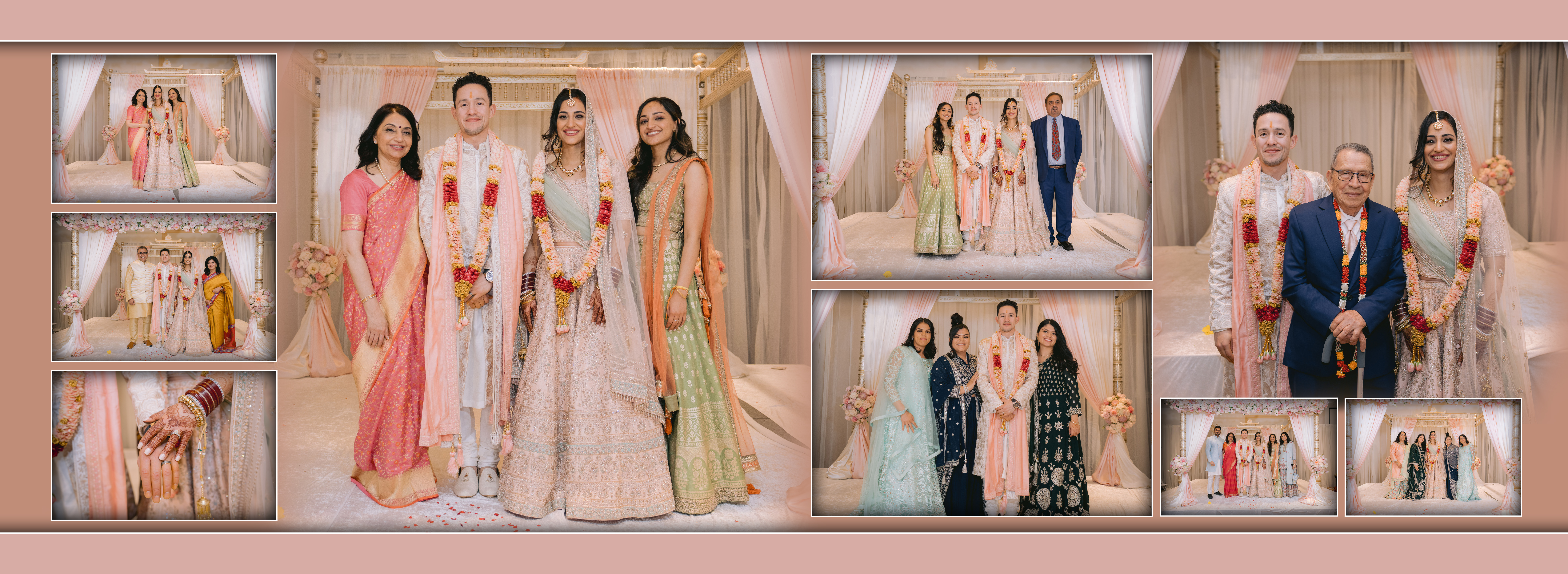 Most of our multi-cultural weddings look best with a custom designed 40 page layflat wedding album that has been designed by us using the couple’s choice of photographs. This ensures we design the album with the images the couple likes the most and is most important to them. We send the client a “proof mockup” via email for review and any change requests before sending the final design prior to printing.