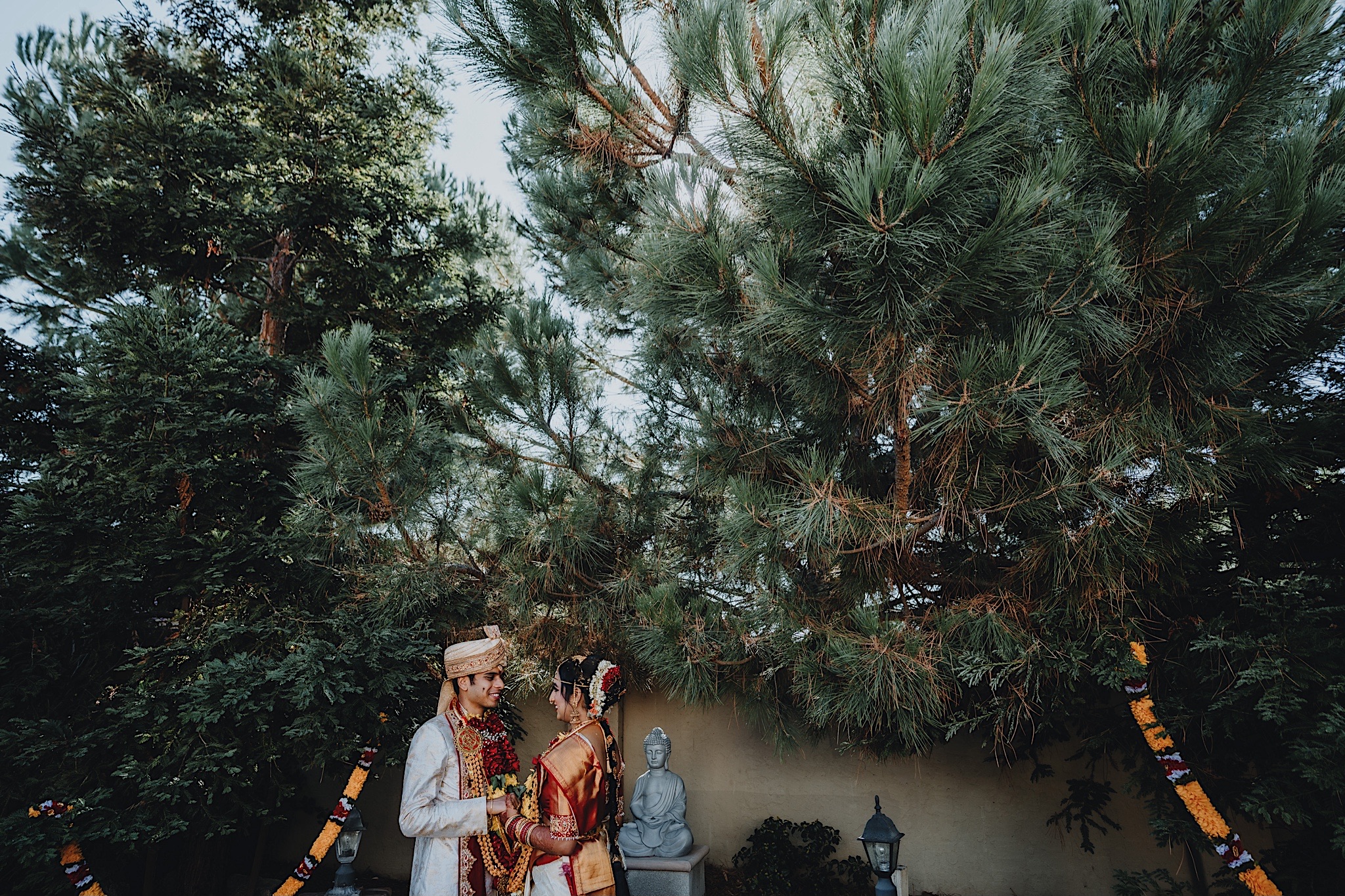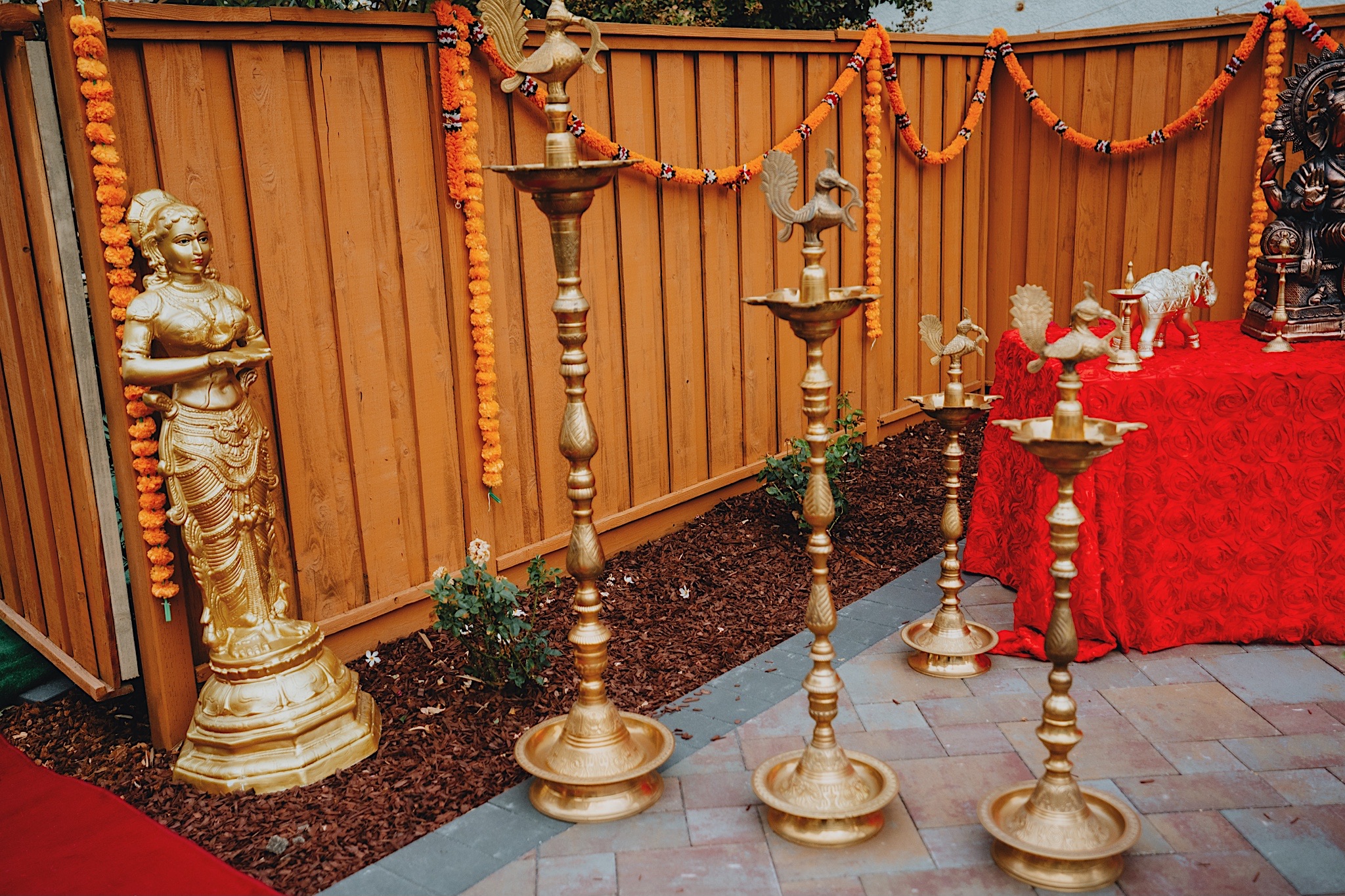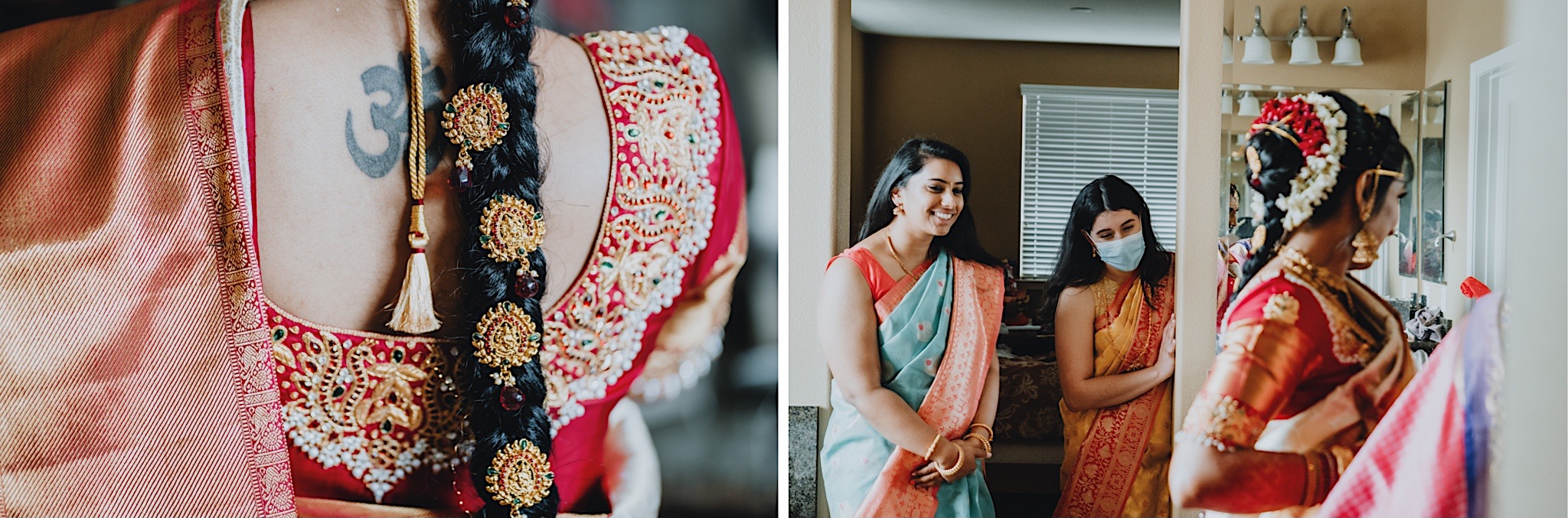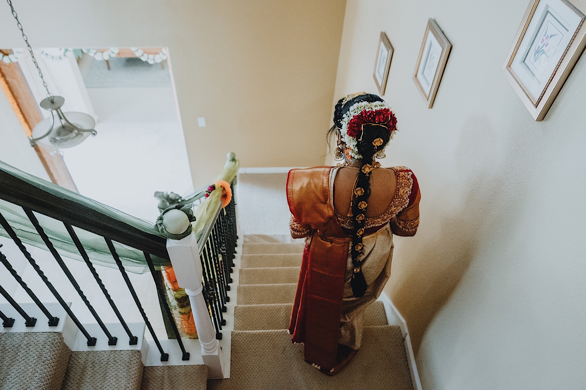 Shravya and Karthik had one such intimate South Indian Wedding in their backyard. It was a beautiful day for an Indian wedding and we started the day early in the morning just like most South Indian weddings. Shravya was already ready with beautiful hair and makeup and her South Indian Bridal saree before she would change into another saree early on in the ceremony. Their backyard was transformed into a wedding venue with beautiful decorations and Mandap.