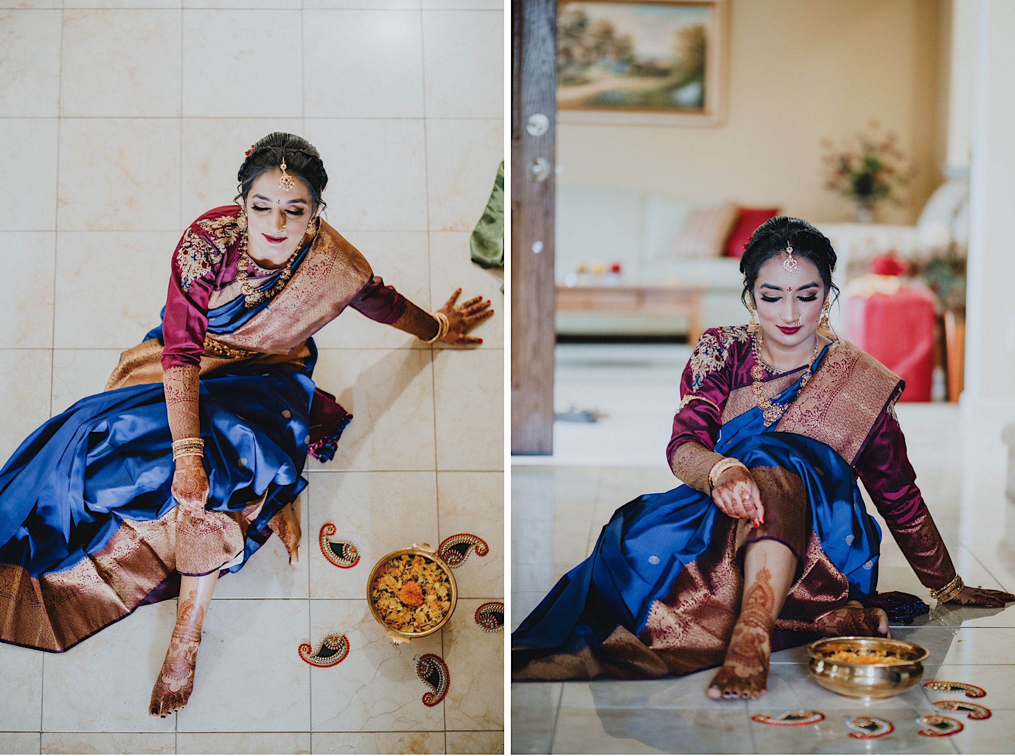 We photographed a few different poojas prior to the ceremony, the groom’s welcome pooja and the bride’s Gowri pooja.